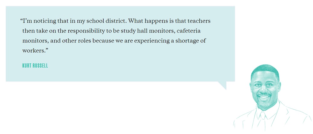 In recent years, however, that goal has become more challenging to meet. Like many educators across the country, Russell has dealt with the unprecedented disruption of the coronavirus pandemic, a more contentious environment around classrooms and curriculums, and nationwide staff shortages that have left already busy school employees juggling additional tasks and responsibilities.