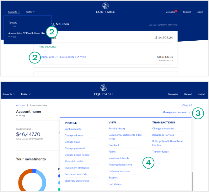 See the transactions available when you sign into the Financial Life Inc portal. Transactions vary by account type.